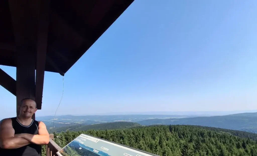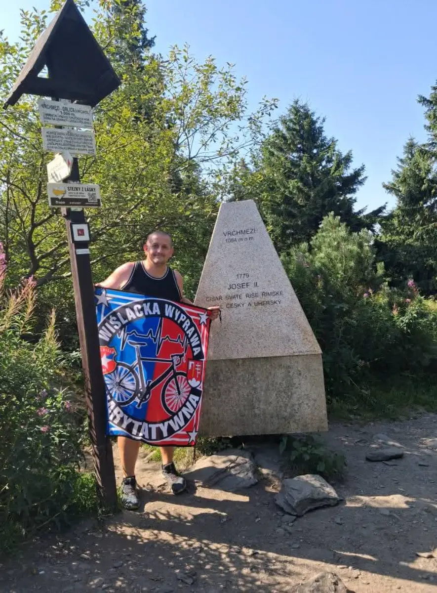 szlak. Po niecałej godzinie marszu docieramy na szczyt po drodze mijając słup graniczny z Czechami. Dosłownie chwilę później docieramy na sam szczyt, gdzie standardowo pieczątka do książeczki Korony Gór Polskich i pamiątkowe foty.![]()