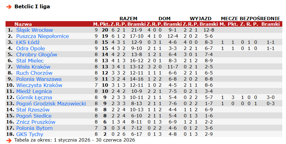 Ewentualna wygrana w niedzielnym spotkaniu ten spokój może przynieść. Będzie on na pewno bardzo istotny, bo przed Wisłą ciężki terminarz w postaci meczów z Ruchem Chorzów i Puszczą Niepołomice. Obie te drużyny punktują na wiosnę zdecydowanie lepiej, niż pod koniec roku 2025.
